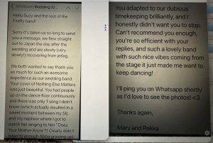 On 11th October, we played at a very special 50th wedding anniversary party for Dave & Sue at Whittlebury Hall