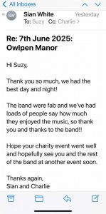 We absolutely loved playing at Mary and Pekka’s wedding at Prescott Hill Climb on Bank Holiday Monday 5th May 2025.